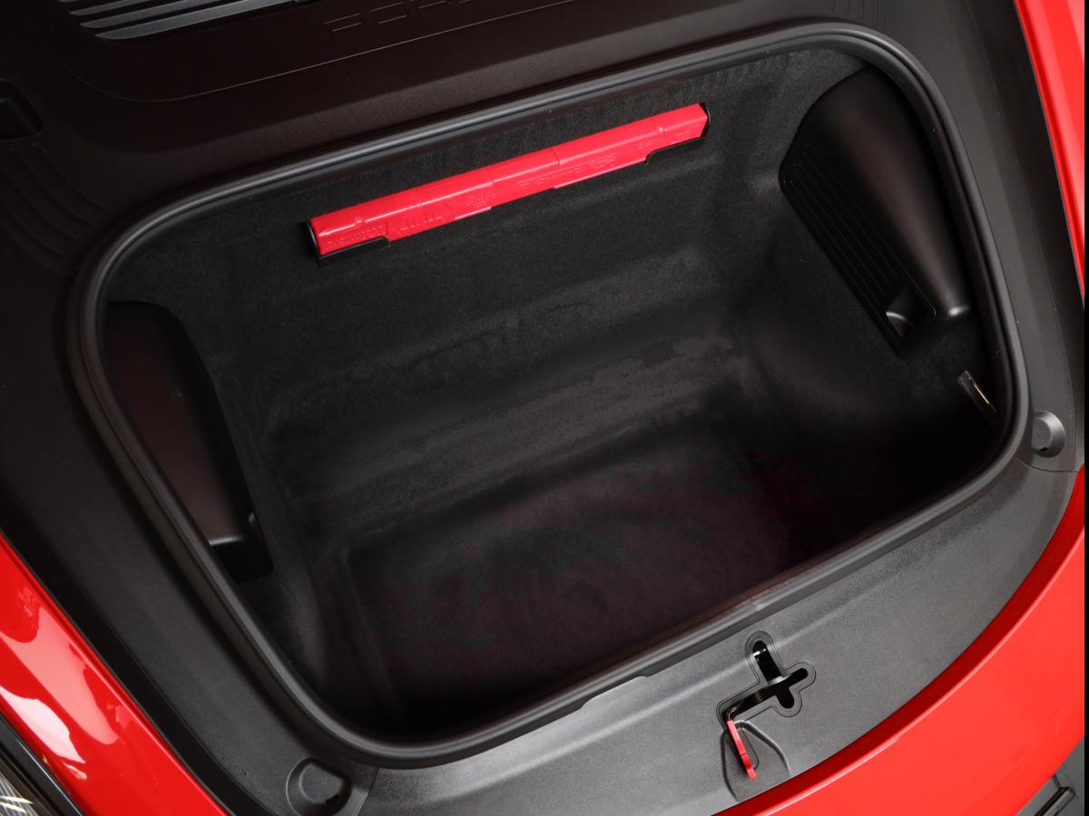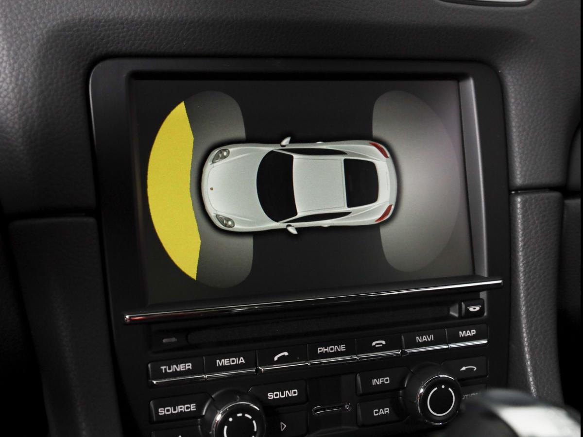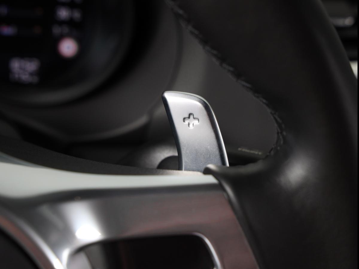 À l’extérieur nous avons des belles jantes noires satin, des étriers jaunes siglés Porsche, des feux arrière empruntés au GTS.