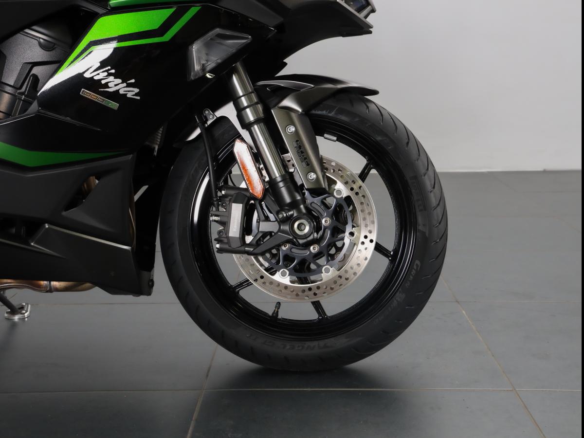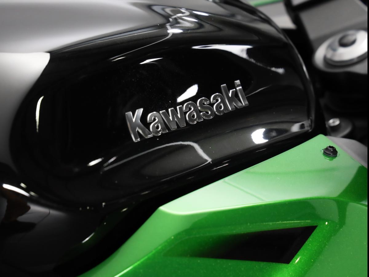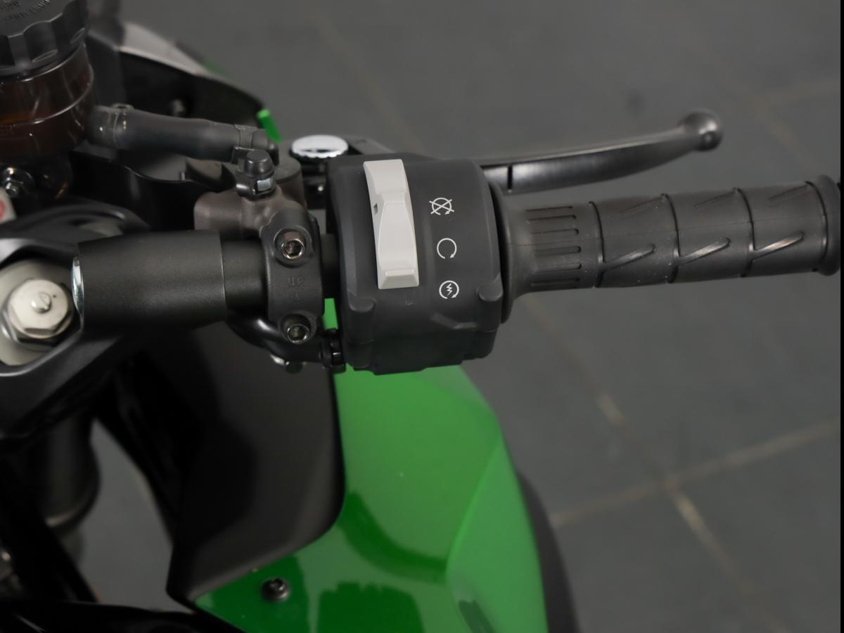 Notre modèle aux couleurs Kawa est de première main. L’état exemplaire laisse comprendre que son propriétaire a respecté la machine. L'historique est limpide et le pneus ont été changés récemment. Il n'y a donc aucun frais à prévoir. Tout est top.