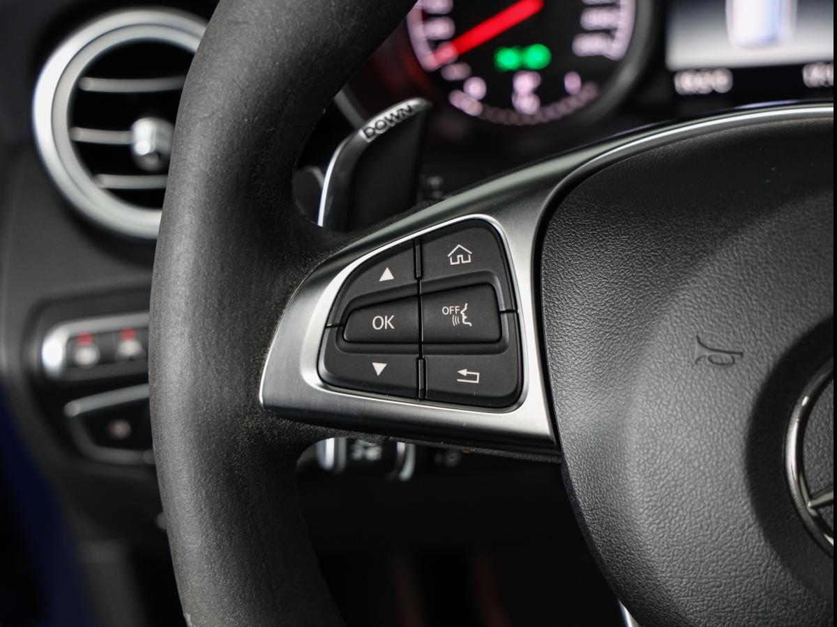 Notre belle Benz est configurée de façon particulièrement sportive avec une couleur bleue qui lui va à merveille. Qu'en pensez-vous?